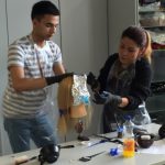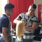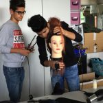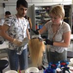 Das zentrale Thema waren Farbkontraste. Diese galt es in vielfältiger Art zu realisieren. Zunächst setzten sich die zusammengestellten Tandems mit einem Informationstext zum gewählten Thema auseinander. Gemeinsam legten sie fest, welche besonderen Merkmale den gewählten Farbkontrast kennzeichnen. Dazu war ein kleines Poster zu erstellen. Diese Aufgabe mussten die Gastschüler übernehmen. Manche der praktischen Aufgaben erfüllten die Teams gemeinsam, andere wurden eigenverantwortlich von einem Partner übernommen. Die Schüler aus Syrien, Nigeria, Äthiopien, Iran und Irak lernten neue Wörter und konnten sich über „Fachliches“ unterhalten. Auch bereits gelernte Wörter aus dem Fachwortschatz des Friseurs konnten ihr abstraktes Dasein aufgegeben und sind für die Schüler greif- und begreifbar geworden. In unseren Friseurklassen ist eine kulturelle Diversität „normal“ und die Toleranz enorm hoch, deshalb fanden 28 Schüler schnell ihren Platz und ihre Aufgabe. Engagiert und gut gelaunt wurden die Aufgaben bearbeitet. Auf die Ergebnisse können alle Schüler stolz sein.