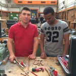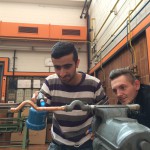 Für die Lehrlinge im dritten Ausbildungsjahr hingegen geht es darum, langsam mehr Verantwortung in ihrem Beruf zu übernehmen und dazu gehört auch das Anleiten von Praktikanten oder Azubis der ersten beiden Ausbildungsjahre. So galt es für unsere Auszubildenden, die Flüchtlinge schrittweise und sicher in berufstypischen Tätigkeit zu unterweisen. Die Teams aus je einem Azubi und einem Flüchtling stellten gemeinsam ein Übungsstück her, bei dem Rohre abgelängt, gebogen und verbunden werden mussten. Die Verbindungen wurden entweder gepresst oder gelötet. Durch dieses intensive Zusammenarbeiten konnten alle Beteiligten gewinnbringend voneinander und vor allem miteinander lernen.