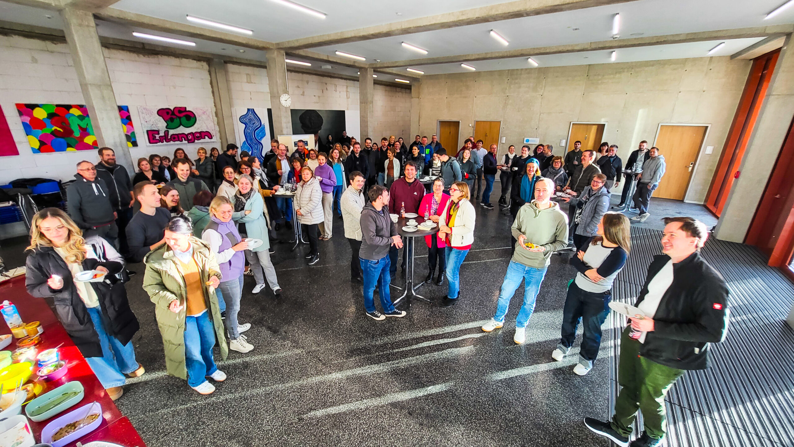 Am Buß- und Bettag veranstaltete die Berufsschule Erlangen ihren Pädagogischen Tag. Los gings um acht Uhr morgens mit dem „Spirituellen Impuls“ der Religionsabteilung. Nach der geistigen Stärkung folgte die körperliche; ein gemeinsames Frühstück im Eingangsbereich des Neubaus.