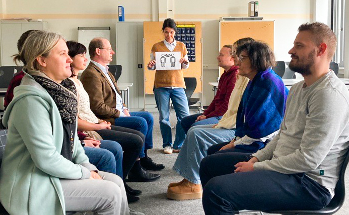 Danach gings in Kleingruppen in ein breitgefächertes Angebot an Kursen mit so illustren Titeln wie Bewegungspause, Flex and Mind, Fobizz, Foto, KI BayCS, Sexualisierte Gewalt, Standing, Step Aerobic, Team Teaching und Tutory. Da eine Erklärung der Kursinhalte hier zu weit führen würde, helfen vielleicht die folgenden Fotos einen kleinen Eindruck zu vermitteln:
