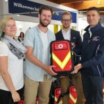 Unsere beiden Schulsanitäter Pia Schussler-Gorny und Sascha Chladek nahmen den neuen Rucksack von MdB Stefan Müller, dem Vorsitzenden des BRK, in Empfang. Der stellvertretende Schulleiter Jürgen Schreiner bedankte sich im Namen der Berufsschule für die großzügige Spende.